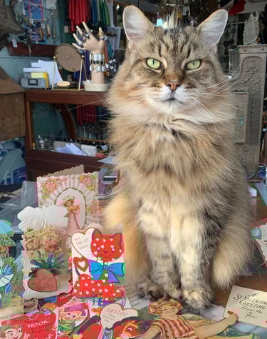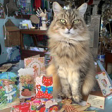 It is with great sadness that we share the news of Beatrice's passing on June 9th. Beatrice was Howard Dragon’s unofficial greeter. She was the heart of the store with people coming from all over the world to visit her. She was typically found napping among the antiques or keeping a watchful eye on visitors from her favorite perch. She will be deeply missed by us and all her friends.
