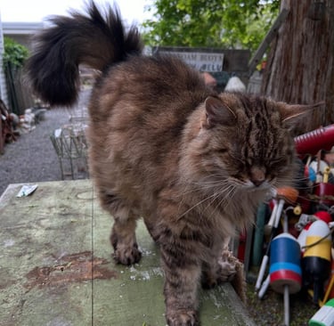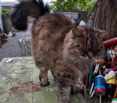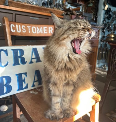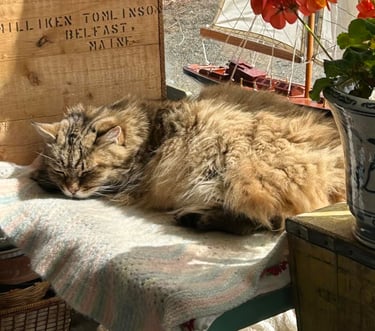 Beatrice was the shop’s resident Maine Coon Cat. At 13 years old Beatrice was very friendly and brought a loving spirit into the store. She liked a good ear scratch and has had many portraits taken and posted by her adoring fans. She was a polydactyl with seven toes on each front paw but said “please do not touch my feet.” Beatrice has an extensive social media following on her weekly “Where’s Beatrice Wednesday” posts along with many loyal shop visitors who came to Essex each year, just to see her. It is with great sadness that we share the news of Beatrice's passing on June 9th. She will be deeply missed by us and all her friends.