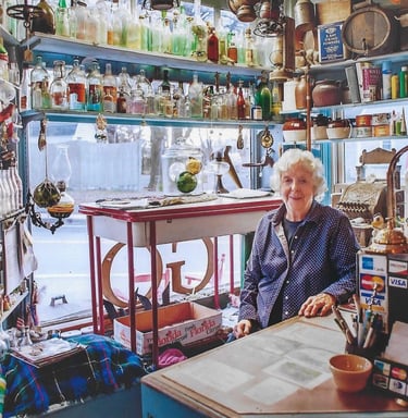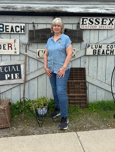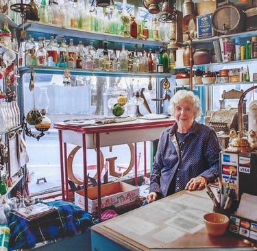 While growing up in the family-owned antique business, Cathy learned early on that people want good deals and interesting items. She loves to talk about antiques that have history and a unique story. Combining her experience in retail and vintage collectibles, like her mom Laura, she has kept Howard’s Flying Dragon Antiques an authentic destination for treasure seekers visiting the North Shore. Cathy is also the creator of a popular “words in the window” shop feature that changes once or twice a week to highlight local events, history, sports, weather, and special moments. She is also known for her vintage hand-crafted painted wooden signs featuring nostalgic sayings and local destinations. Cathy and Beatrice were pleased to be featured on a 2024 episode of WCVB’s “Chronicle” show last year.